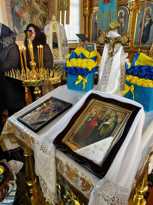 Після спільної молитви біля батьківської оселі скорботна хода рушила до храму Покрови Пресвятої Богородиці, де відбувся чин відспівування.