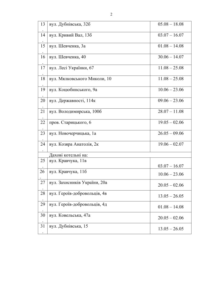 Отож, було затверджено наступний графік припинення подачі гарячої води.Читати ще: У Луцьку прийняли рішення про припинення опалювального сезону