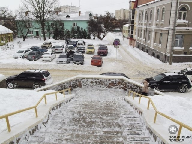 Там автівки паркують прямісінько біля сходів адмінбудівлі. Таку картину можна було спостерігати сьогодні близько 11:00. Характерно, що в цей час мер Луцька Микола Романюк проводив нараду з керівниками ЖЕКів, комунальних підприємств, керівництвом міської ДАІ на предмет подолання наслідків зимової негоди у місті.