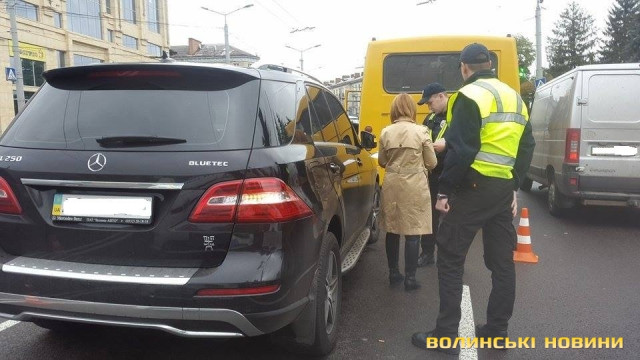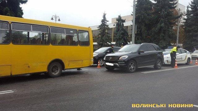 Біля центрального універмагу Луцька трапилася ДТП за участю маршрутки № 31 та позашляховика Mersedes.