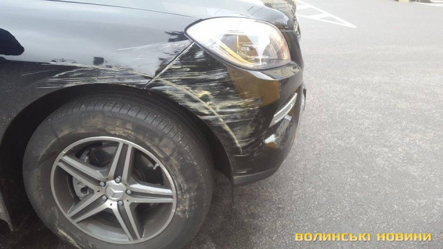 У результаті ДТП Mersedes отримав подряпини на передній правій частині бампера.