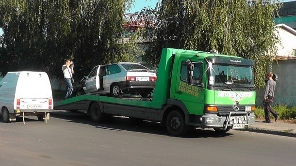 Внаслідок зіткнення легковик опинився поперек дороги, з розтрощеним переднім лівим боком.