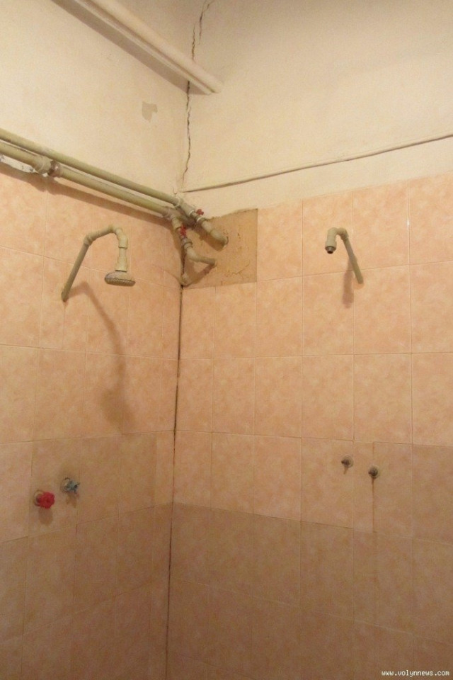 «І враховуючи, що витяжної вентиляції абсолютно нема, вся волога осідає на стіни. А та вся плитка, яка на стінах, вона частинами відвалюється», – каже Руслана Оксентюк.