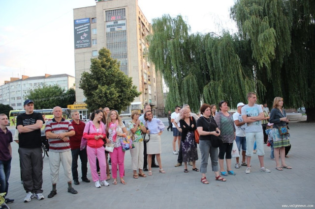 Послухати якісну музику, просто неба, зібралося досить багато лучан, незважаючи на те, що про концерт стало відомо лише за день до виступу. Перед початком концерту музикантів, згідно з українською традицією, частували хлібом та медом.
