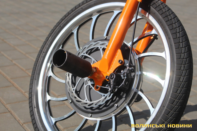 Водій за кермом перебуває практично напівлежачи. У його розпорядженні – гальма та педаль газу. Ногами впирається на виступи, що додані до переднього колеса. Якщо важіль гальм нагадує мотоциклетний чи велосипедний, то кнопка для газу – маленька й підлаштована під великий палець. Це зроб¬лено для того, аби координувати рух під час вивороту керма.Виріб недешевий – у межах півтори тисячі доларів. Найдорожчими деталями є тонкий електродвигун, схований у переднє титанове колесо, та акумулятор, що кріпиться за сидінням. Заводиться пристрій ключем, а заряджається від звичайної розетки, як електромобіль. Потужність акумулятора дозволяє інтенсивно їздити до 3-3,5 годин, переконує співрозмовник. До чотирьох годин потрібно для повного заряду. Акумулятора вистачає на 2-2,5 тисячі циклів заряду-розряду.