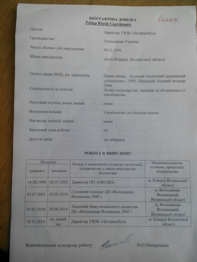 Люстраційний комітет до роботи!!! Перевірка на вашу пронизливість та безкомпромістність в боротьбі за правду! А ще Ребар Юрій виконував замовлення Даніліна (Луцького міського прокуратора) на виготовлення дерев"яних будинків для розважального комплексу біля МАКСИМУСУ - "Щас спою" (з краденого ("місцями") лісу :) . Прошу розвінчати мої "здогадки" документально :)