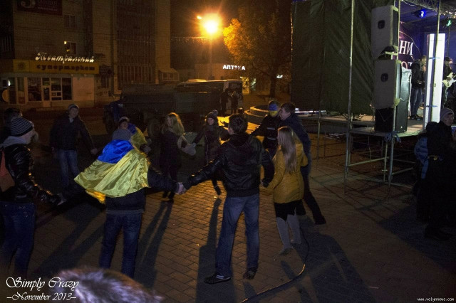 Окрім того, Сашко Положинський розповів присутнім про те, що мережею Партією Регіонів ширяться заклики їхати на антиєвропейський майдан в Київ. За це, мовляв, платять 300 гривень. Отож музикант закликав молодь таки поїхати автобусами регіоналів до столиці, взяти наперед 300 гривень, однак постояти на мітингах «за» Європу, і повернутися в Луцьк.