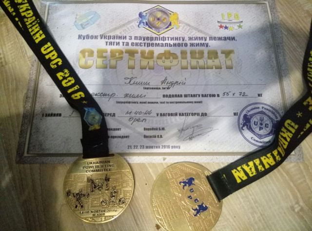 Книш Андрій посів перше місце у відкритій віковій категорії, витиснувши штангу 55 кілограм за 3 хвилини 72 рази.