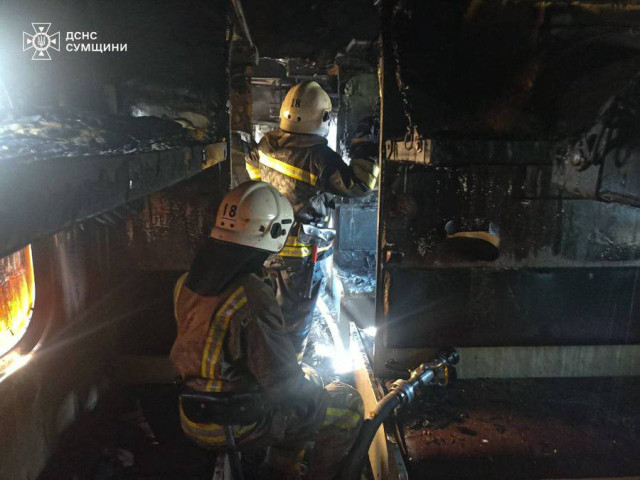 «Пасажири намагалися загасити полум’я вогнегасниками, але коли вогонь набрав сили – звернулися до рятувальників. Через пожежу у вагоні загинув залізничник, серед пасажирів постраждалих немає. Пожежу локалізовано, причини встановлюються», – інформували в Укрзалізниці.