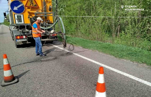 Також проводиться герметизація тріщин дорожнього покриття. Це один із ключових превентивних заходів для продовження терміну експлуатації дороги та збереження її конструктивної цілісності.