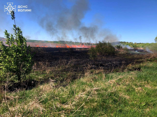 26 квітня станом на 16:00 на Волині зафіксовано дві пожежі на відкритих територіях.