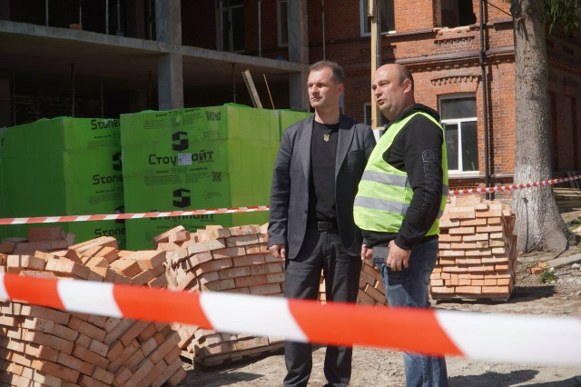 «Проінспектував та відзначив масштаби виконаних робіт. На сьогодні вже збудований каркас першого поверху, монолітне перекриття, підвальне приміщення та укриття. Тривають роботи у старій будівлі, де підсилюються опорні конструкції згідно з проєктом.