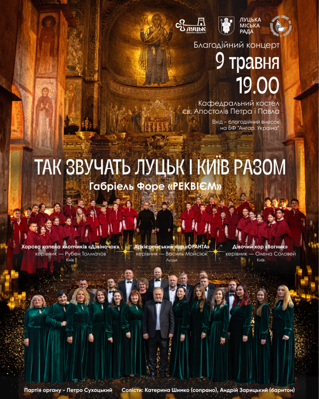 Унікальністю заходу стане спільне виконання чоловічим складом хору «Оранта» та капели хлопчиків «Дзвіночок» «Реквієму» Габрієля Форе у супроводі органної музики від титулярного органіста костелу Петра Сухоцького.