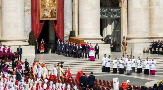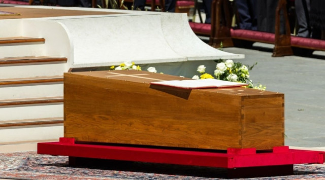 Після того, як кардинал Ре окропив труну освяченою водою, її занесено до базиліки Святого Петра, звідки вона вирушить до базиліки Пресвятої Марії для поховання.