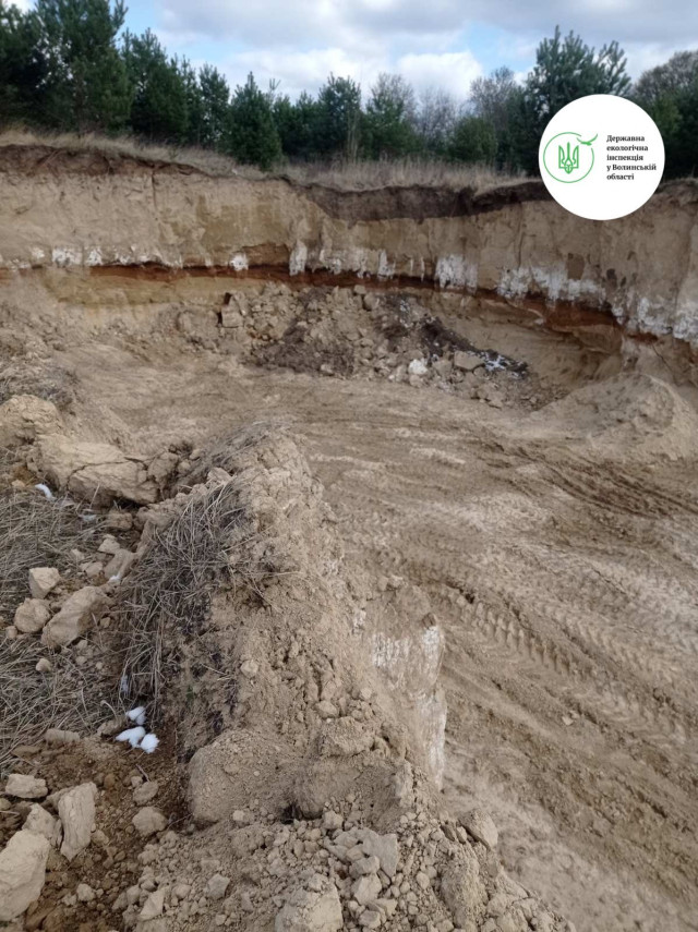 Під час обстеження території, зазначеної у скарзі, поблизу сіл Михлин та Маруся Луцького району, виявлено факти несанкціонованого видобутку корисних копалин місцевого значення (ґрунтово-піщаної суміші).