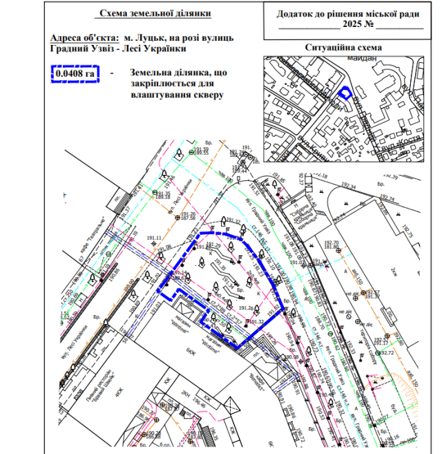 У Луцьку визначили межі скверу на розі вулиць Градний Узвіз і Лесі Українки.