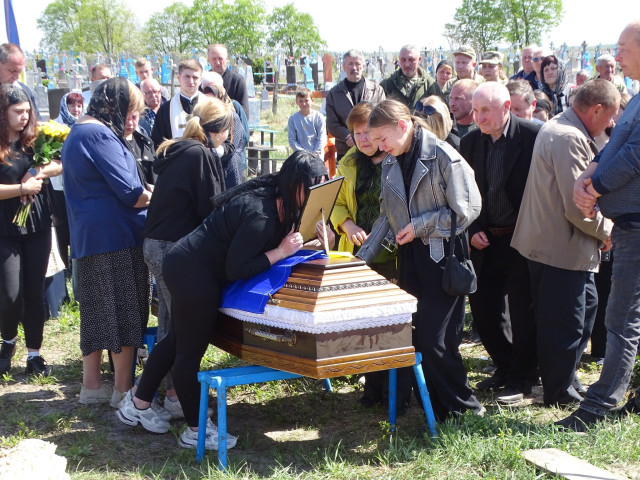 Із військовими почестями воїна Дмитра поховали на місцевому кладовищі. На його честь прозвучав військовий салют і тричі «Слава!»