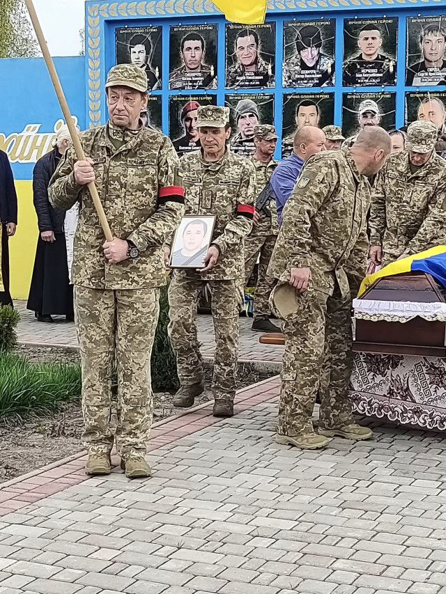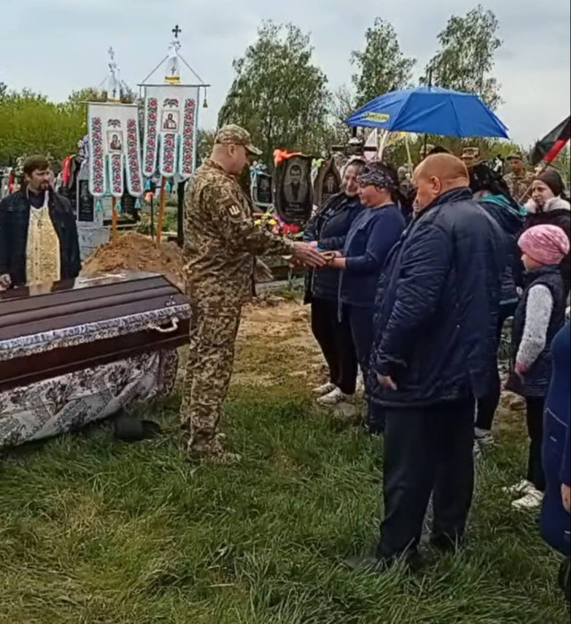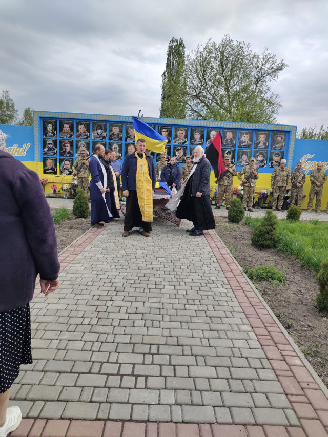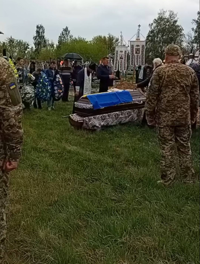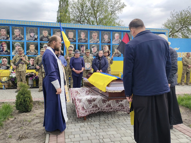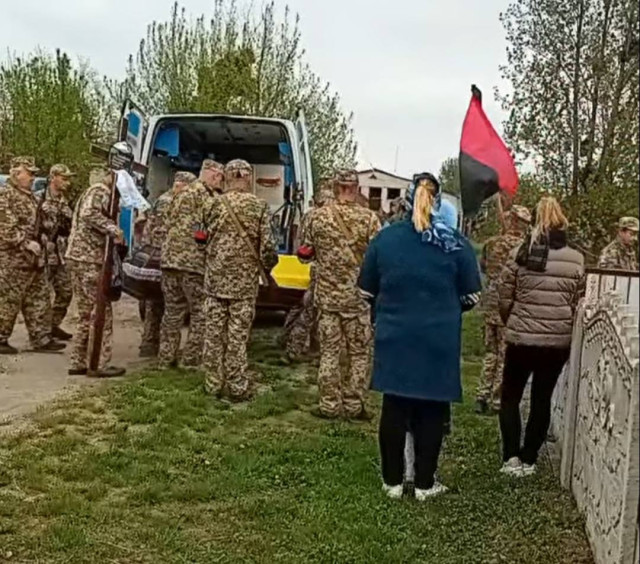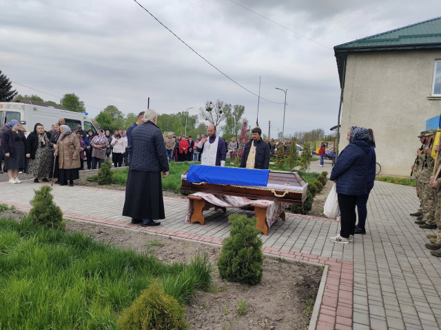 Поховали Героя з військовими почестями на місцевому кладовищі. Прапор, яким була покрита домовина Героя, військові вручили його дружині.