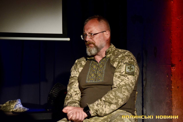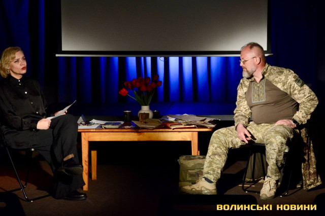 Як нагадала модераторка розмови, акторка театру «Гармидер» Наталка Шепель, Сергій Годлевський у мирному житті – викладач, історик-краєзнавець. Він здобув чотири вищі освіти. Сергій – учасник Революції Гідності, учасник АТО, а від початку повномасштабного вторгнення – офіцер 6-го прикордонного Волинського загону, доброволець з позивним Професор. Нині після поранення перебуває на реабілітації в Луцьку.Читати ще: Волинський історик-краєзнавець і захисник Сергій Годлевський – про три революції, захист Батьківщини, родовий герб та ікону-оберіг