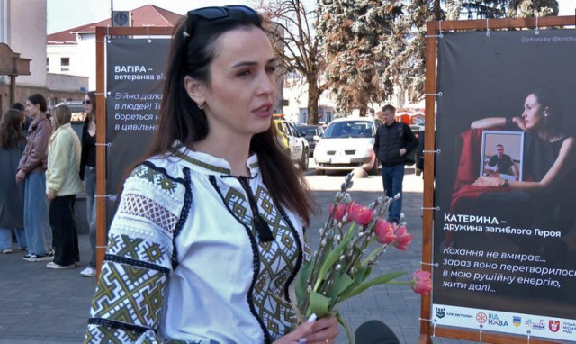 «Є жінки, що не мають сили з тим боротися. Треба їм підтримку. Якщо ми одна одну підтримаємо, не тільки вдови, а й люди навколо, тоді набагато легше вирватися із тої прірви болю і горя. Я його тримаю біля свого серця. Але оцей мій погляд... Тоді я так не задумувалася, а зараз розумію, чого я вибрала ту світлину – бо дивлюся вперед. Я хочу жити!» – додала волинянка.Керівник ветеранського хабу в Луцьку Тарас Сасовський розповів: нинішній день – це привід наголосити про значимість жінок у сучасних реаліях. З його слів, частиною інсталяції є повідомлення, які нагадують про їхні права і важливість.«Війна стосується також і жінок. Вона стосується їх у дечому і більше, ніж чоловіків, навіть тому, що жінки чекають своїх чоловіків. Це сильна стать зараз. Гендерна упередженість зникає. Вона ще є, на жаль, навіть у ЗСУ в окремих випадках, але вона зникає», – зазначив він.Упродовж акції ветерани-військові дарували квіти усім жінкам не центральній площі Луцька.