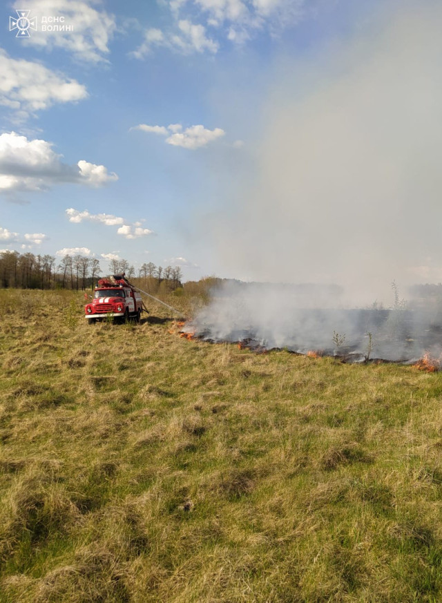 О 16:09 повідомили, що в селі Переспа Луцького району горить суха трава на площі 2 га. Рятувальники 3-ї ДПРЧ Рожища, 21-ї ДПРП селища Голоби та МПО села Переспа подали чотири водяні стволи і використовували підручні засоби для гасіння.У селі Кадище Луцького району загорілася суха трава на площі 0,02 га. Пожежу приборкали рятувальники 6-ї ДПРЧ Ківерців та МПО села Цумань. Причину встановлюють.У Ковелі на вулиці Наливайка горіли суха трава та чагарники на площі 0,5 га. Рятувальники 19-ї ДПРЧ Ковеля ліквідували пожежу, використавши один водяний ствол та підручні засоби.