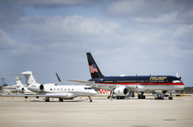 «Наша стратегія захисту – це наша медійна стратегія», – постійно повторював Трамп.Особистий літак Трампа, Boeing 757-200, названий Trump Force One – за аналогією з Air Force One, як називають літак президента США. У ньому місця для 43 людей, спальня, ванна кімната, вітальня, їдальня та кухня. В декорі літака – чимало 24-каратного золота