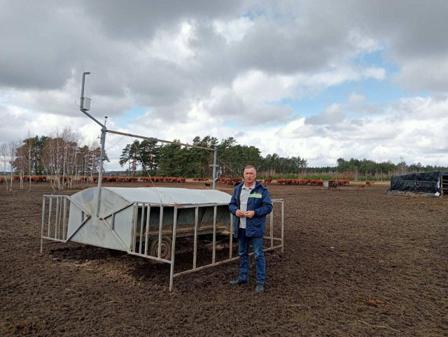 – Для телят, які народжуються на природі й часто потребують додаткового збалансованого харчування, керуючий дільницею у селі Красноволя Сергій Лихач запропонував виготовити на базі гужового транспорту мобільну годівницю зі спеціальним коридором. Її об’єм становить 1000-1200 кілограмів кормів, а розрахована вона на 18-20 голів.Сергій Лихач, керуючий дільницею, запропонував виготовити мобільну годівницю зі спеціальним коридором для телят.