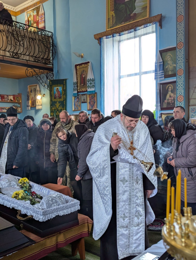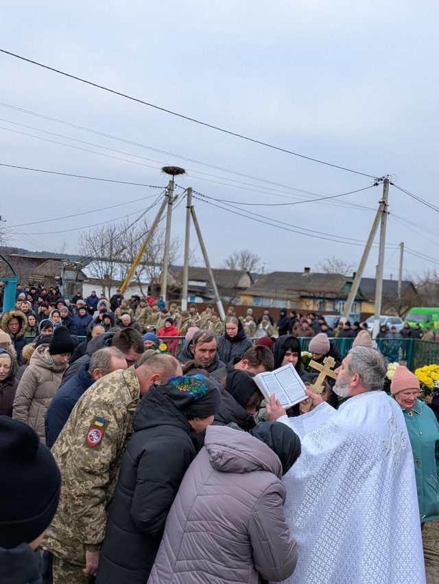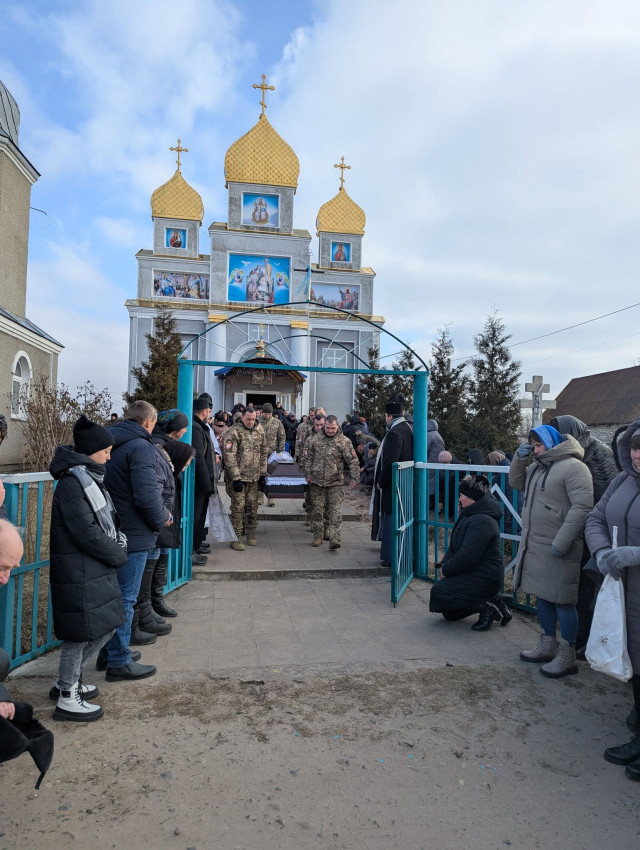 Напередодні полеглого за волю і свободу України воїна громада зустрічала живим коридором шани, а сьогодні, 8 лютого, попрощалася з Героєм. У місцевому храмі – Церкві Різдва Пресвятої Богородиці ПЦУ с. Кричевичі відбулася заупокійна служба.