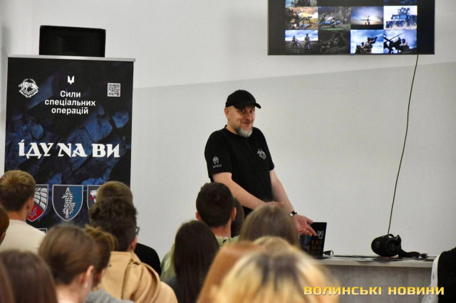 «Ми – чинні військовослужбовці, нас через поранення перевели з бойових на небойові посади. Тепер займаємось, зокрема, просвітницькою діяльністю. Адже майбутнє цієї країни – це ви, студенти. І патріотичне виховання молоді не менш важливе, ніж бойова служба», – зазначив Шрек.Військові почали зустріч із діалогу про те, як студенти розуміють призначення Сил спеціальних операцій. Шрек пояснив, що ССО мають три ключові напрями: бойові підрозділи, інформаційно-психологічні операції та організація Руху опору – включно з підрозділами, які діють в тилу ворога.