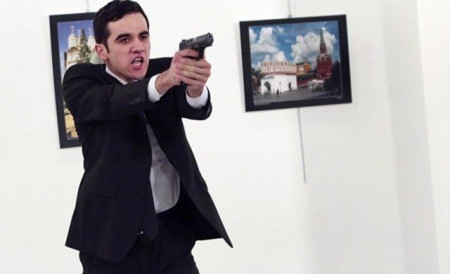 Фотографія зроблена за два дні до вбивства посла. Отже, в день вбивства він був чинним співробітником спецслужб.Турецький поліцейський, який застрелив посла Андрія Карлова, вісім разів забезпечував безпеку Ердогана з моменту спроби державного перевороту в липні цього року. Мерт Алтинташ не входив в команду, яка займалася особистою охороною Ердогана. Він брав участь в операціях із забезпечення безпеки турецького президента.