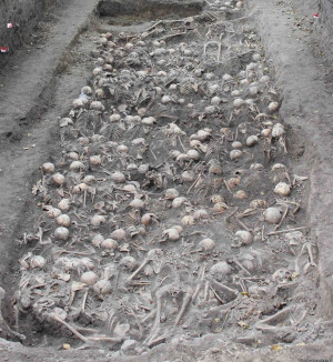 Загалом, на території Володимир-Волинської тюрми знайшли 7 поховань періоду Другої світової війни. Кажуть – там розстрілювали як НКВС, так і нацисти. Археологи дослідили 4 могили. Кажуть, у перших трьох – останки українців, євреїв та поляків. Останнє, 4-те поховання – майже виключно польське.