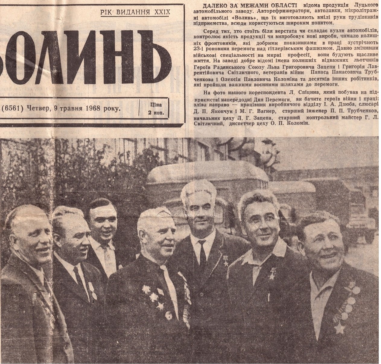 Газета «Радянська Волинь» від 9-го травня 1968 року