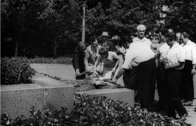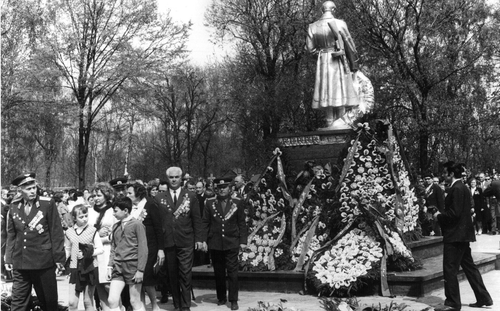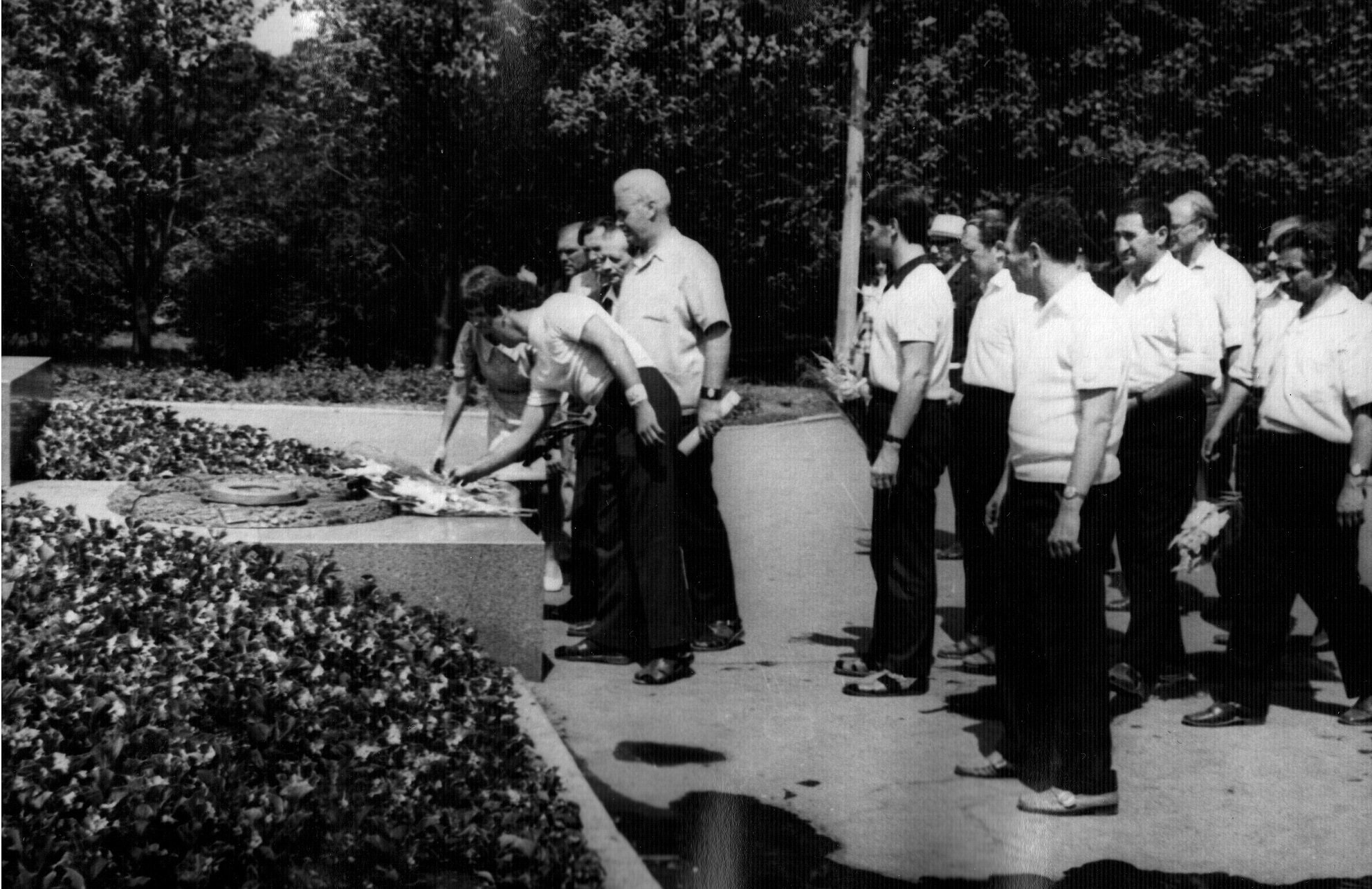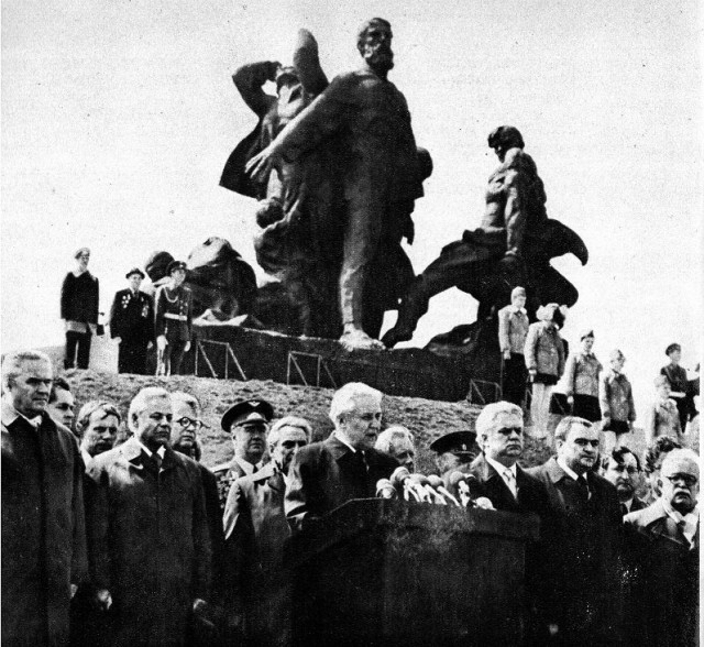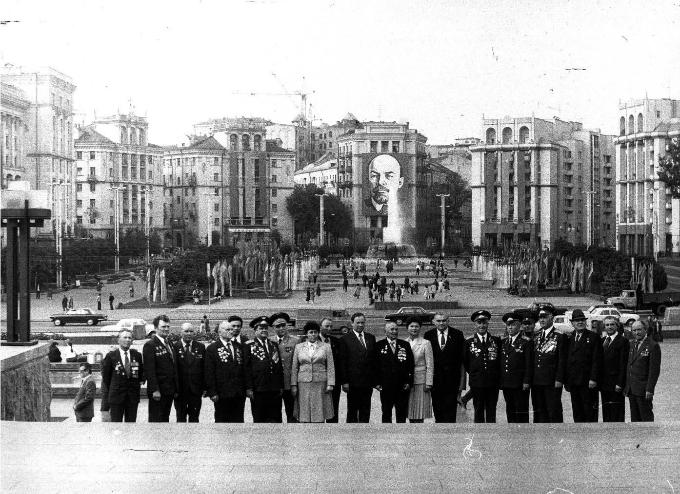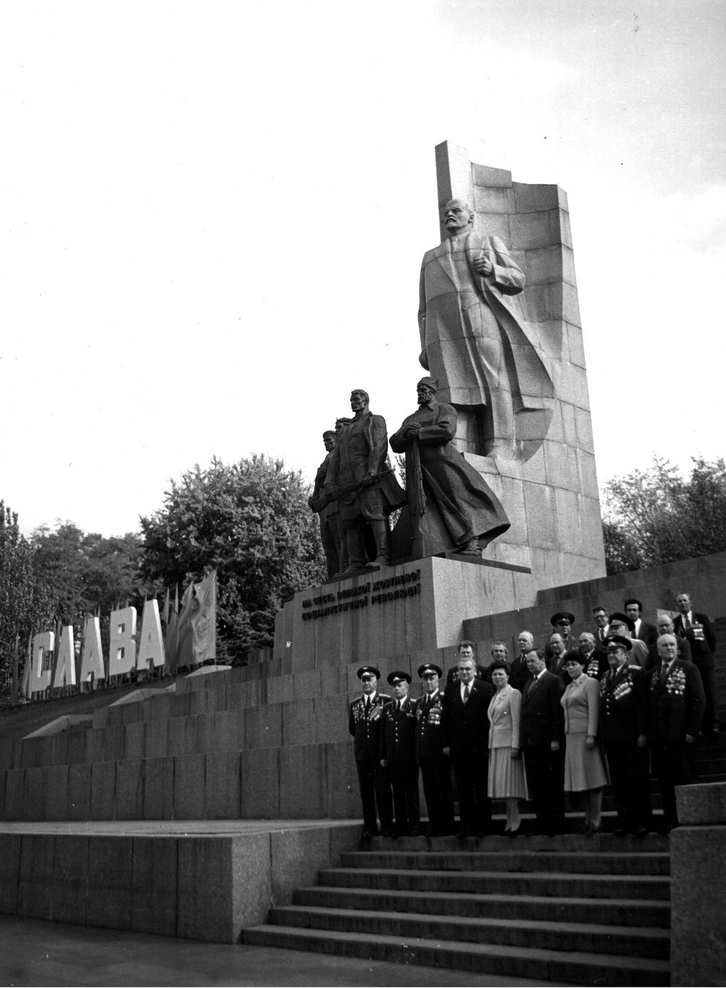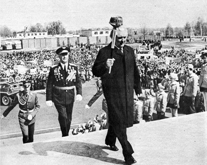 Першим з Вічним Вогнем крокує перший секретар ЦК КПУ Володимир Щербицький. За ним крокує почесний громадянин Луцька, Герой Радянського Союзу Лев Григорович Зацепа