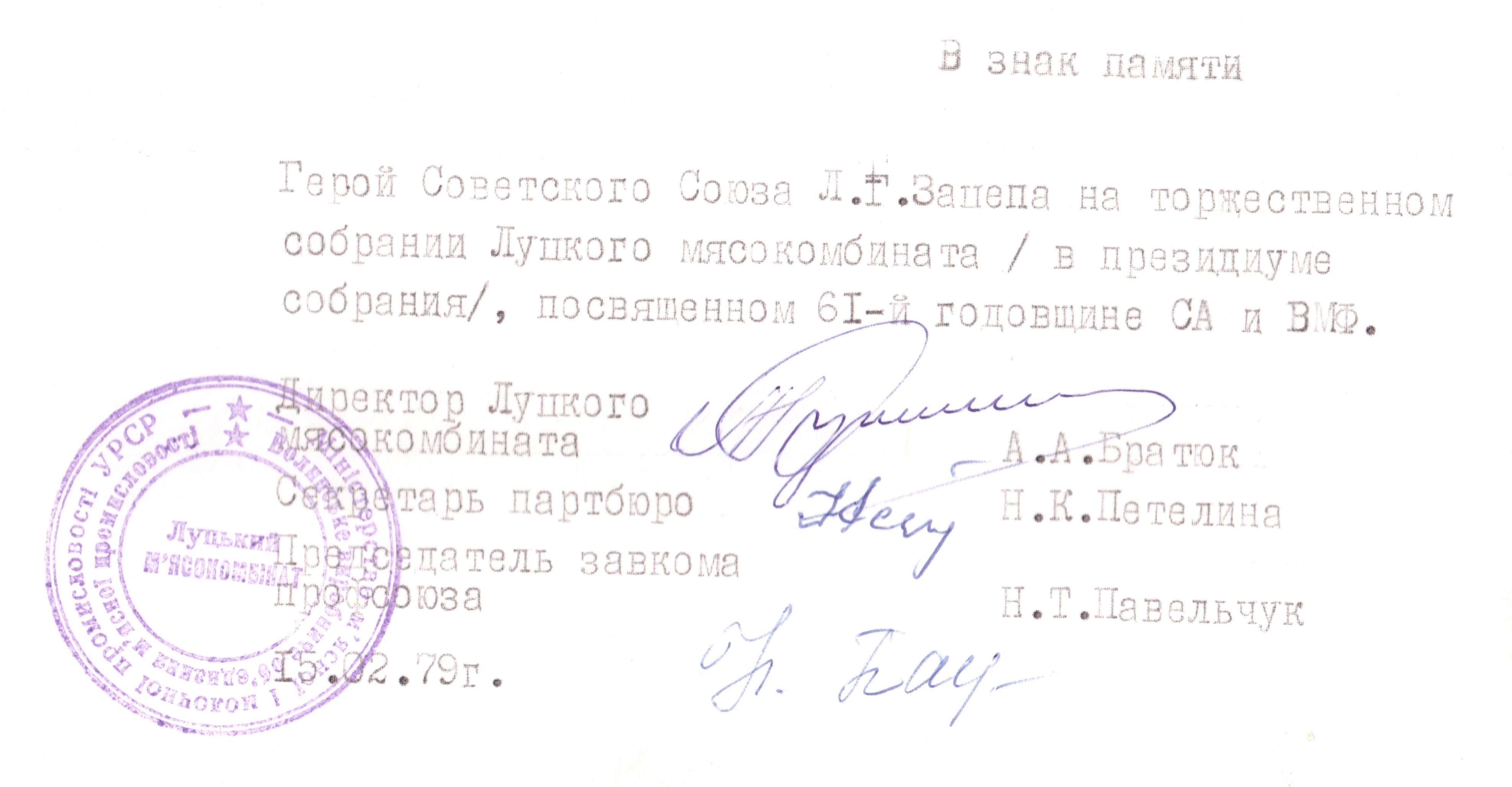 Також Лев Григорович регулярно зустрічався з робітниками різноманітних підприємств Волині та України.Зацепа четвертий зліва