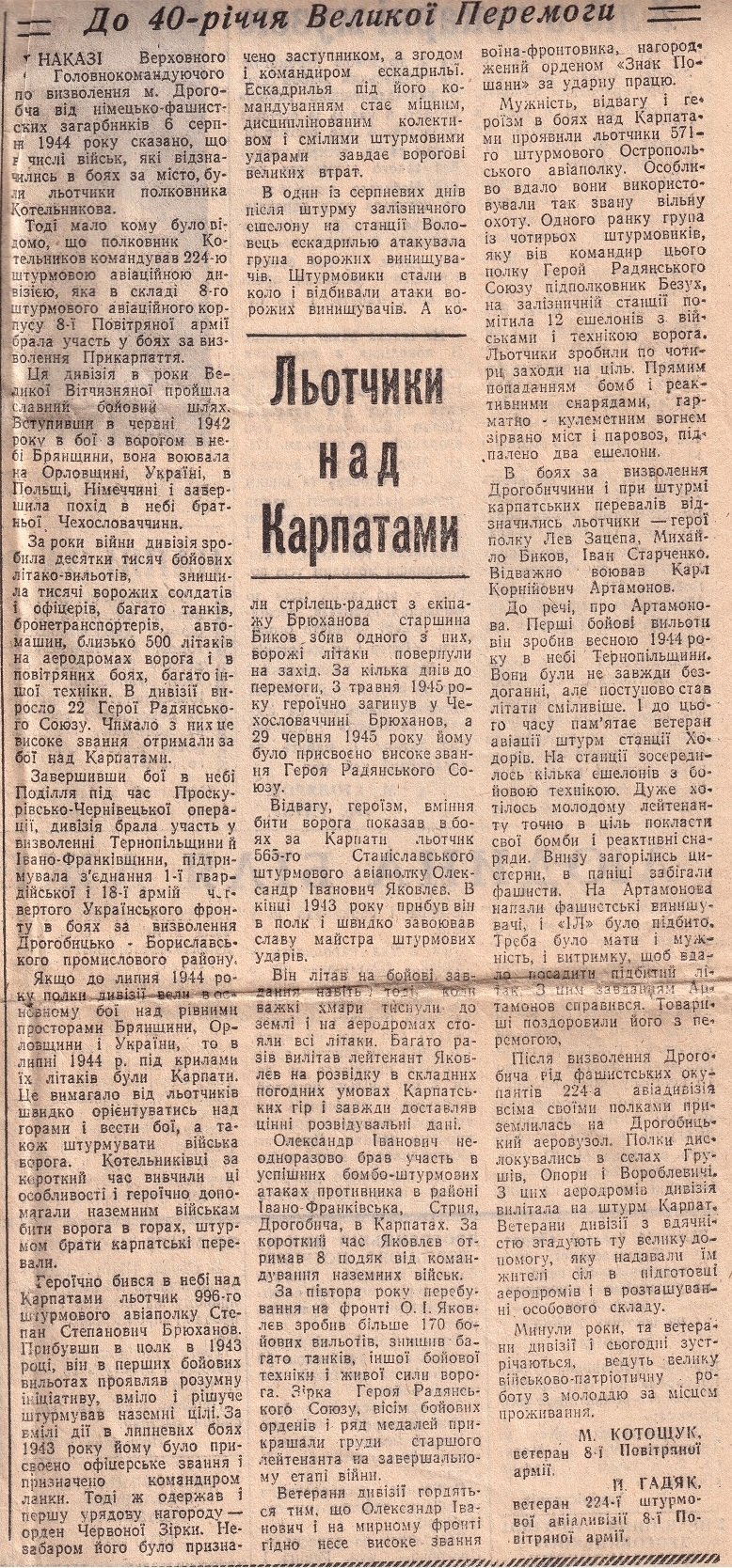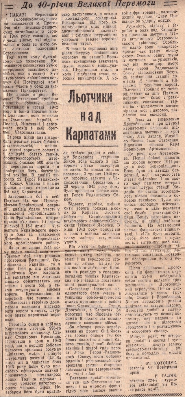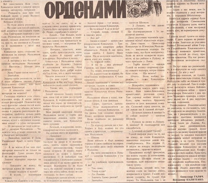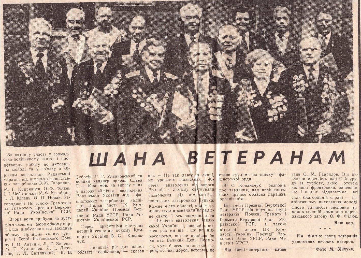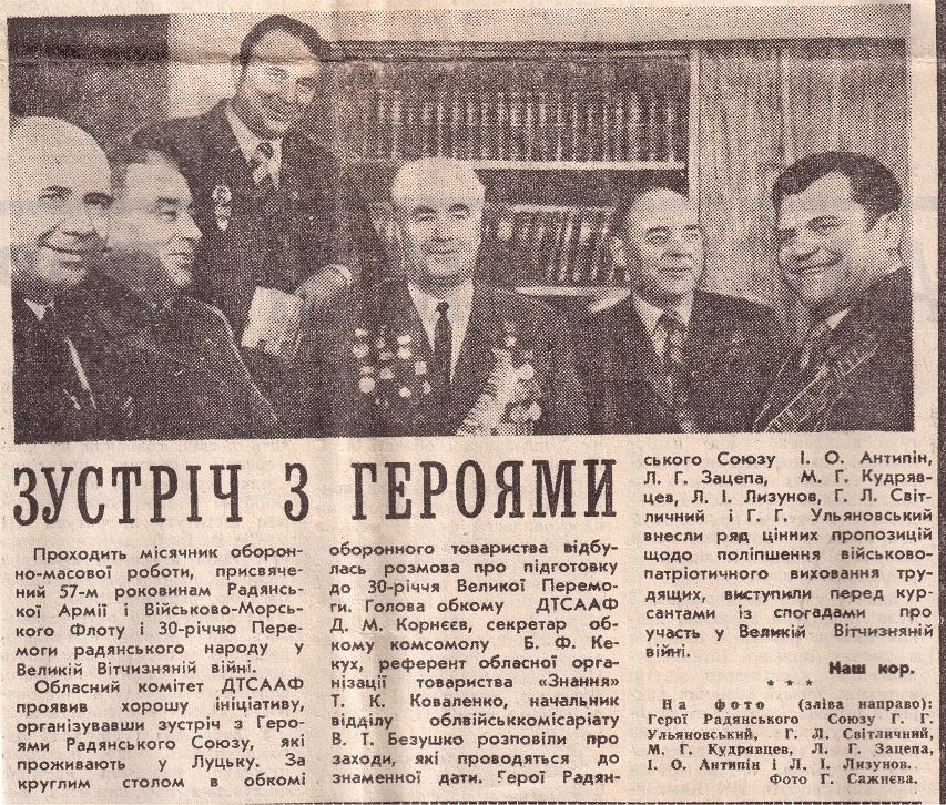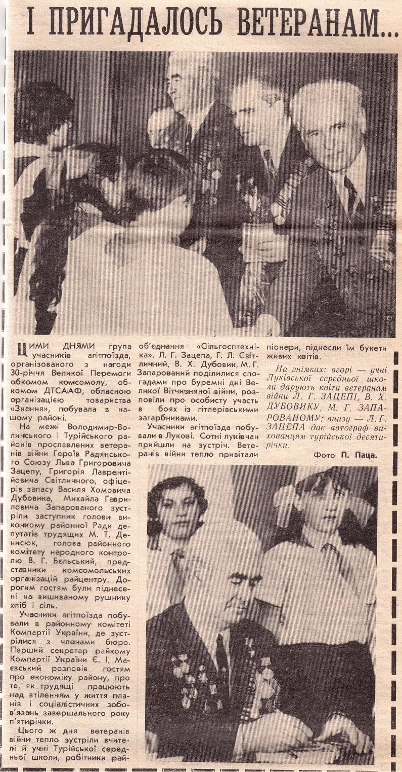 Газета «Радянська Волинь» від 9-го жовтня 1984 року. Зацепа в задньому ряду четвертий зліва