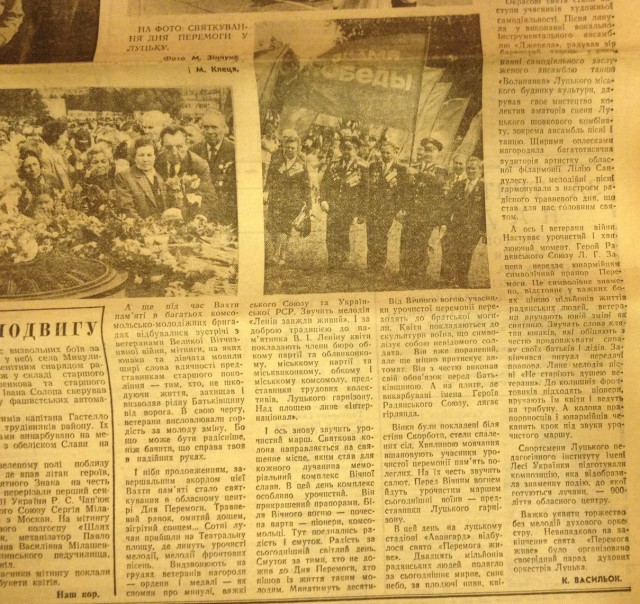 Також в публікації використані фотоматеріали з сімейних архівів доньки почесного громадянина Луцька, Героя Радянського Союзу Леоніда Івановича Лізунова Тетяни Леонідівни Лізунової, а також дружини почесного громадянина Луцька, Героя Радянського Союзу Івана Олексійовича Антипіна Тамари Павлівни Антипіної.