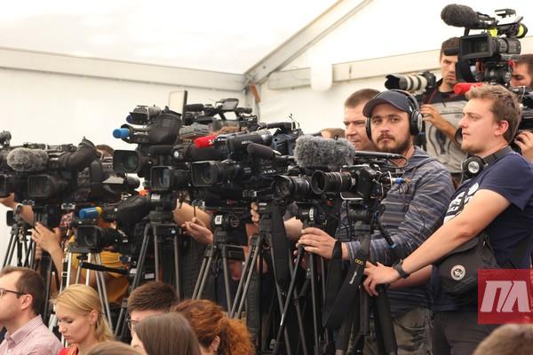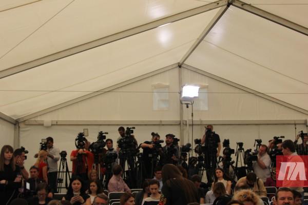 Тут мене знову чекала несподіванка. Для прес-конференції на території АП розіпнули намети. В одному можна було випити кави з пундиками чи взяти води, а в іншому уже стояли стільці, телеоператори з камерами і охоронці.