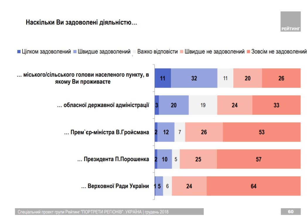 З іншого боку, влада вислизає від Порошенка, бо коли в тебе немає авторитету і ти пересварився з усіма, то конфлікт інтересів з групами впливу визначає межі твоєї влади. Тому тобі ніхто не вірить і ти не можеш консолідувати 50%, яких не вистачає, щоб вести країну чітким курсом. Чіткий курс можливий тоді, коли і населення, і еліти довіряють державі і президенту, як надбудові, яка його увінчує. Однак рівень довіри населення до всіх ключових інститутів влади на рівень мінус 70% і вище.