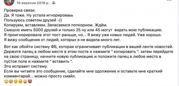 Протягом останнього тижня ви бачили в своїх Facebook-стрічках дописи з закликами поставити «+», бо так буде видно, хто бачить текст автора. Адже безсовісний алгоритм Facebook приховує від нас дописи друзів.