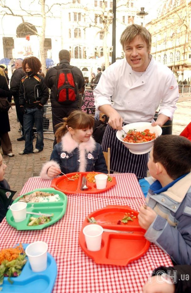 У Великій Британії Олівер відомий своїми телешоу та ресторанами, а також активною позицією за здорове харчування. 2005 року шеф-кухар, який сам є багатодітним батьком, почав вивчати питання харчування школярів та жахнувся: дітям пропонували фастфуд, солодощі, газовані напої та соки з високим вмістом цукру. Зокрема в меню можна було зустріти: бургери, роли з сосисок, рибні палички, нагетси, чипси, ванільний пудинг, картоплю фрі, Turkey Twizzler – ковбасу з індички (індички в ній практично не було), а також іншу жирну їжу.