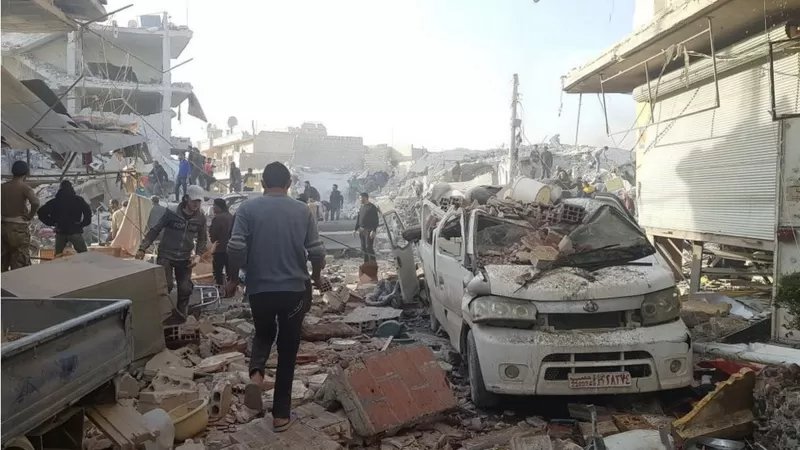 Алеппо у 2013 році. У Сирії війська Асада, яких підтримувала Росія, звинувачували у застосуванні примітивної хімічної зброї