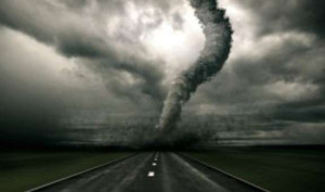 Звивиста гірська дорога. Страшний смерч. Каменопад. Величезні брили гупають на шлях, трощать мости. Брудна вода потоками підмиває ґрунт.