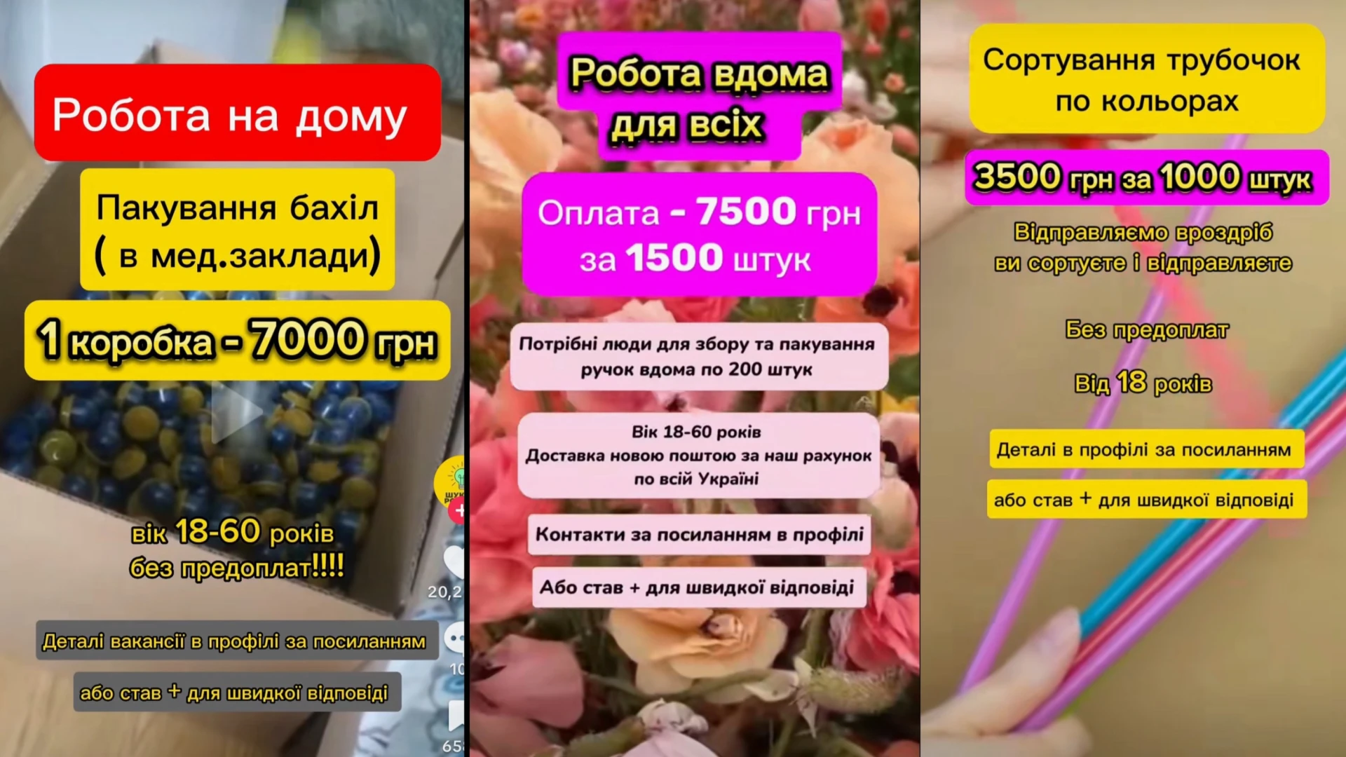 «Шукаємо людей для збору та пакування ручок! 7,5 тис. грн за легку роботу вдома!». На такі оголошення часто можна натрапити в соцмережі TikTok. Пропозиція приваблива: прості завдання та швидкі гроші без складних вимог.