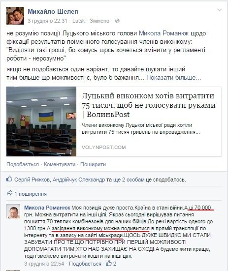 От для прикладу в додатку коментар мера, щодо мого проекту у мережі фейсбук.