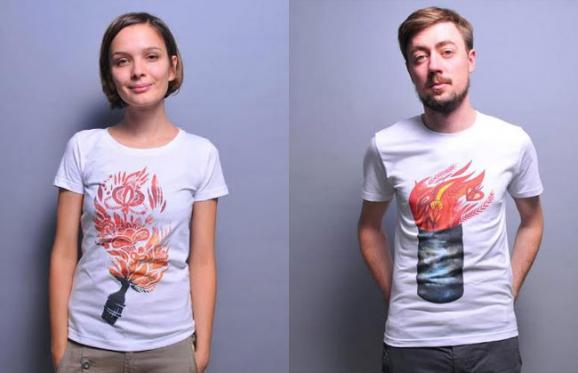 А ось бренд UGAR концентрується на революційній тематиці і друкує на футболках палаючі бочки та коктейлі Молотова.