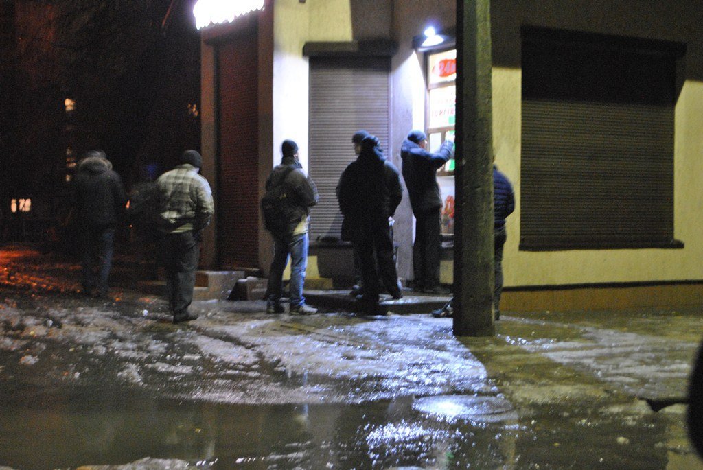 Із серії «*бу і плачу» (з 10.01.2015 (23 год. 30 хв.) до 11.01.2015 (00 год. 10хв.)). Дванадцята ночі, а в магазині «Продукти» по вул. Рівненській (всупереч рішення виконкому Луцької міськради щодо даного об’єкту торгівлі з 1 січня 2015 року обмежити! графік режиму роботи до 22.00 за систематичні порушення заборони продажу алкоголю в місті в нічний час) черга чоловіків «за хлібом у чорний пакетик».