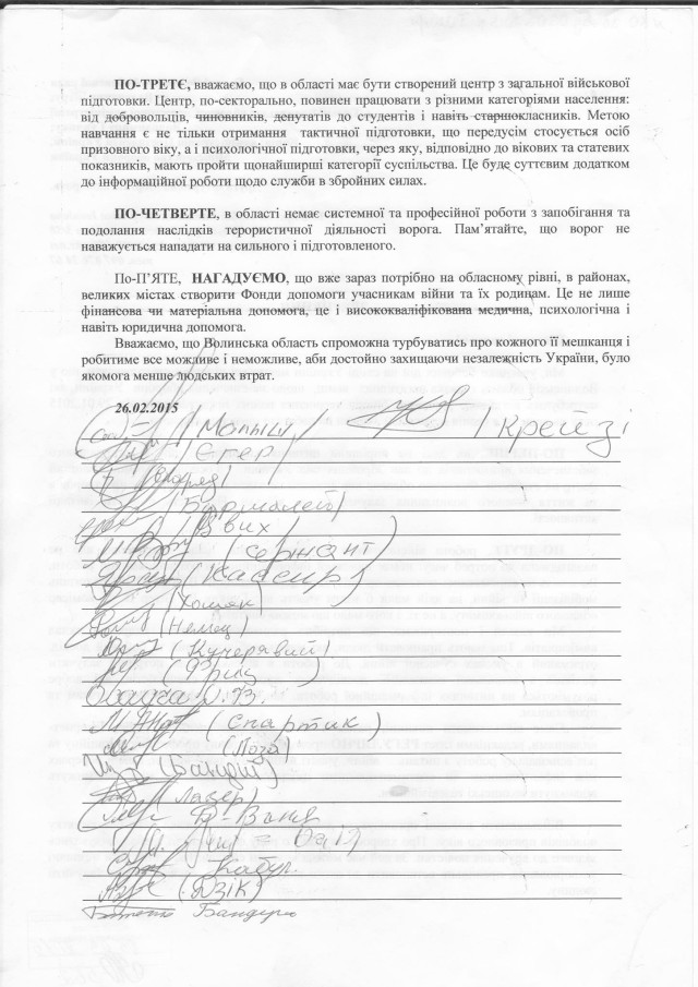 Довідавшись про відсутність реагування на звернення, 22 бійця, разом з командиром Афганської штурмової роти вдруге звернулись до очільників Волинської області з тими ж самими пропозиціями.