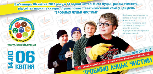 Торік відбулася перша всеукраїнська акція «Зробимо Україну чистою!». Ця аполітична та некомерційна ініціатива є частиною міжнародного руху «Let's do it world!», що виник 2008 року в Естонії.