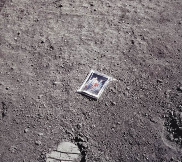 Астронавт Чарльз Дьюк, учасник місії "Апполон-16", залишив у космосі, точніше на Місяці своє сімейне фото із підписом на звороті: "Це сім'я астронавта Дьюка із планети Земля. Квітень, 1972 рік".