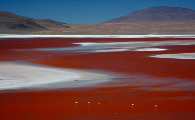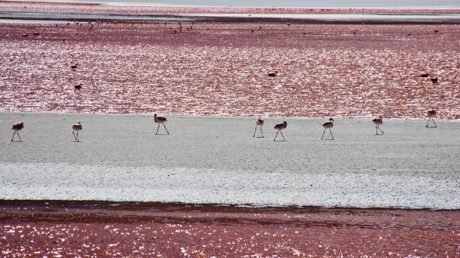 Лагуна Колорадо – це дуже дрібне озеро площею 60 кв. км, розташоване в південній частині болівійського плоскогір’я Альтіплано на висоті 4278 м над рівнем моря. Колір цього озера може змінюватися від криваво-червоного до фіолетового. Це залежить від часу доби і температури повітря. Незвичайний відтінок води надають озеру водорості, що виробляють каротин для захисту від ультрафіолетового випромінювання. Лагуна Колорадо – улюблене місце проживання тисячі фламінго.